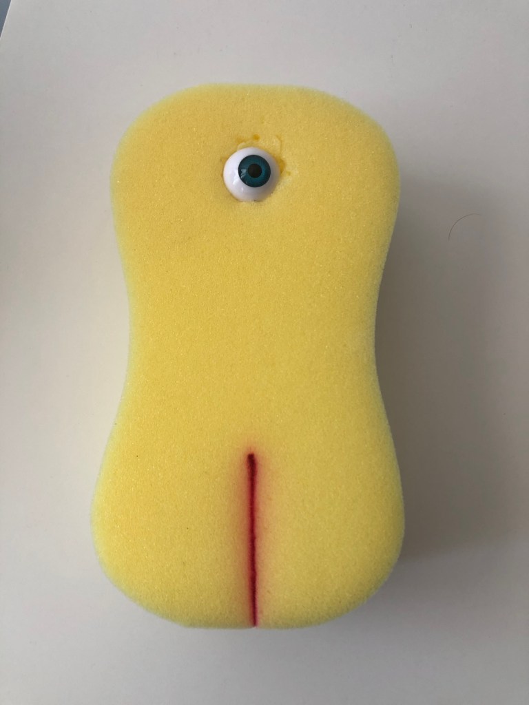 At the start of the process, the poster was lighter and had a more vintage look to it. I added a filter to make the poster look like an old photo, but I liked having it be more dramatic with the black and white. Another feature that came about through the design process was the red portal. For her nursing school, my girlfriend was given a yellow sponge to practice on at home due to COVID. I thought it would be fun to have this in the background as a looming figure, but after messing with layer effects it had a transparent look. It is just enough to see the trees in the background, but with the deep red, it catches the eye.